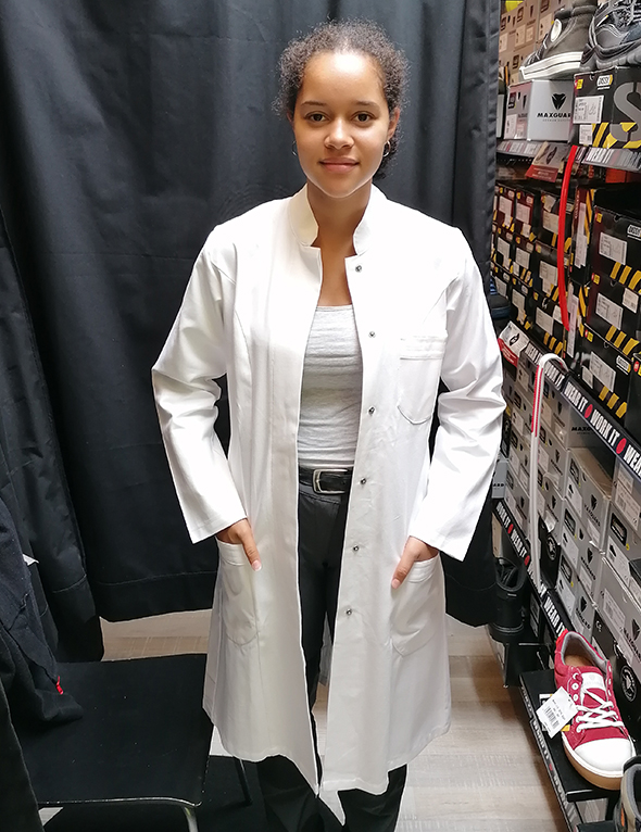 Damenkittel aus 100% Baumwolle und in der Farbe weiß.