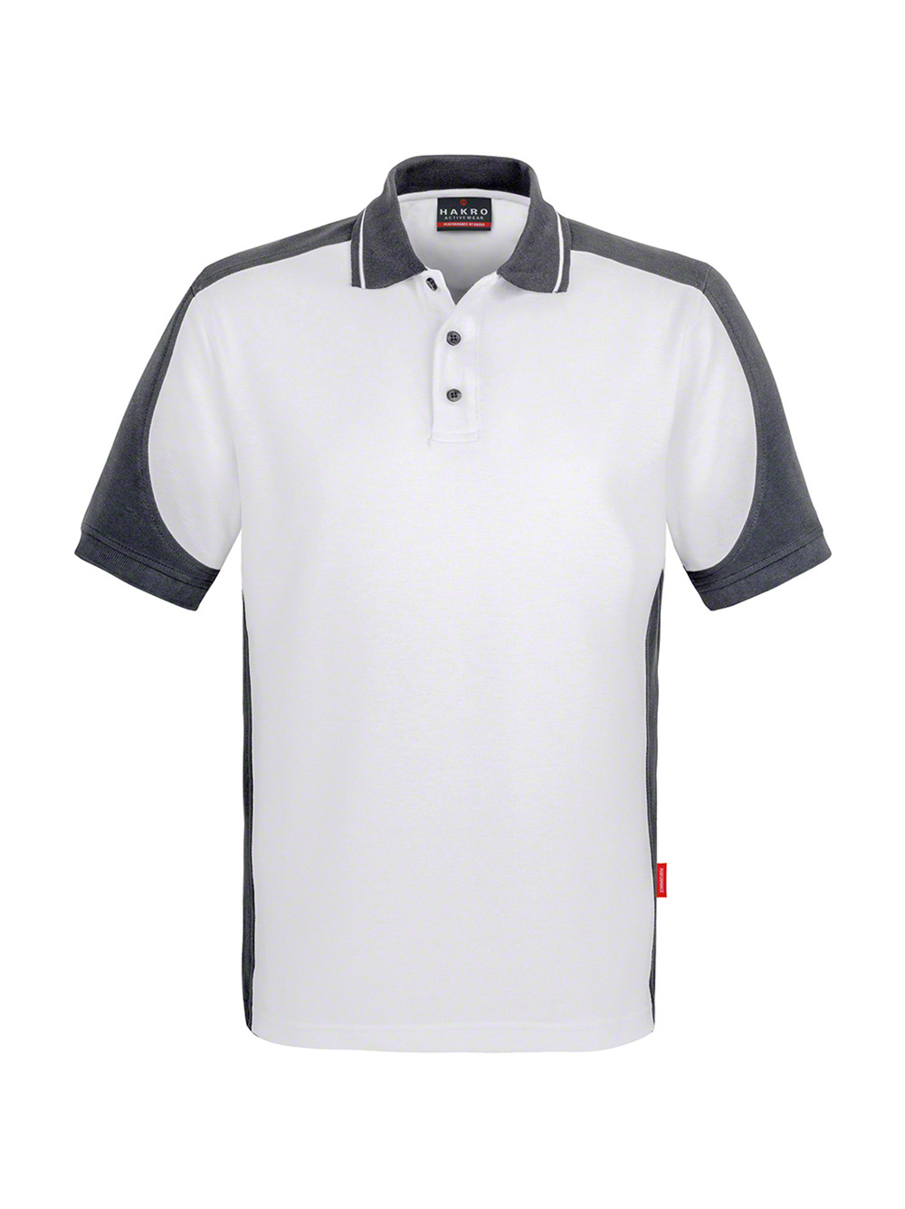 Besonders strapazierfähiges Poloshirt mit kontrastfarbigen Einsätzen an den Seiten, Schultern und Ärmeln, kontrastfarbigem Polokragen mit Streifen und kontrastfarbigen Ärmelbündchen. Hochwertig verarbeitete 3-Loch-Knopfleiste mit extra haltbar angenähten, bruchsicheren Knöpfen mit dem gelaserten HAKRO Schriftzug. Mit Ersatzknopf und Nackenband. Hergestellt aus weichem, besonders pflegeleichtem und funktionellem Piqué aus dem HAKRO Performance-Materialmix Mikralinar®.